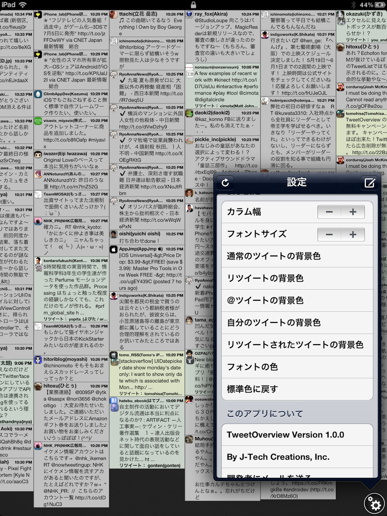 TweetOverview is a simple twitter timeline viewer for iPad. It displays the twitter timeline. You can see up to 100 tweets on screen at once.